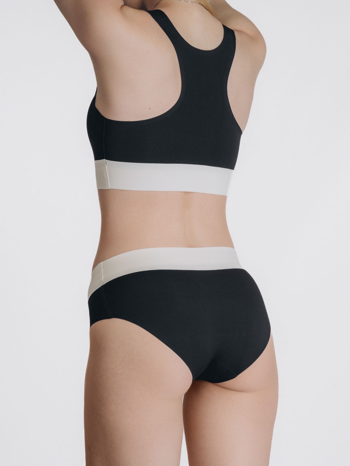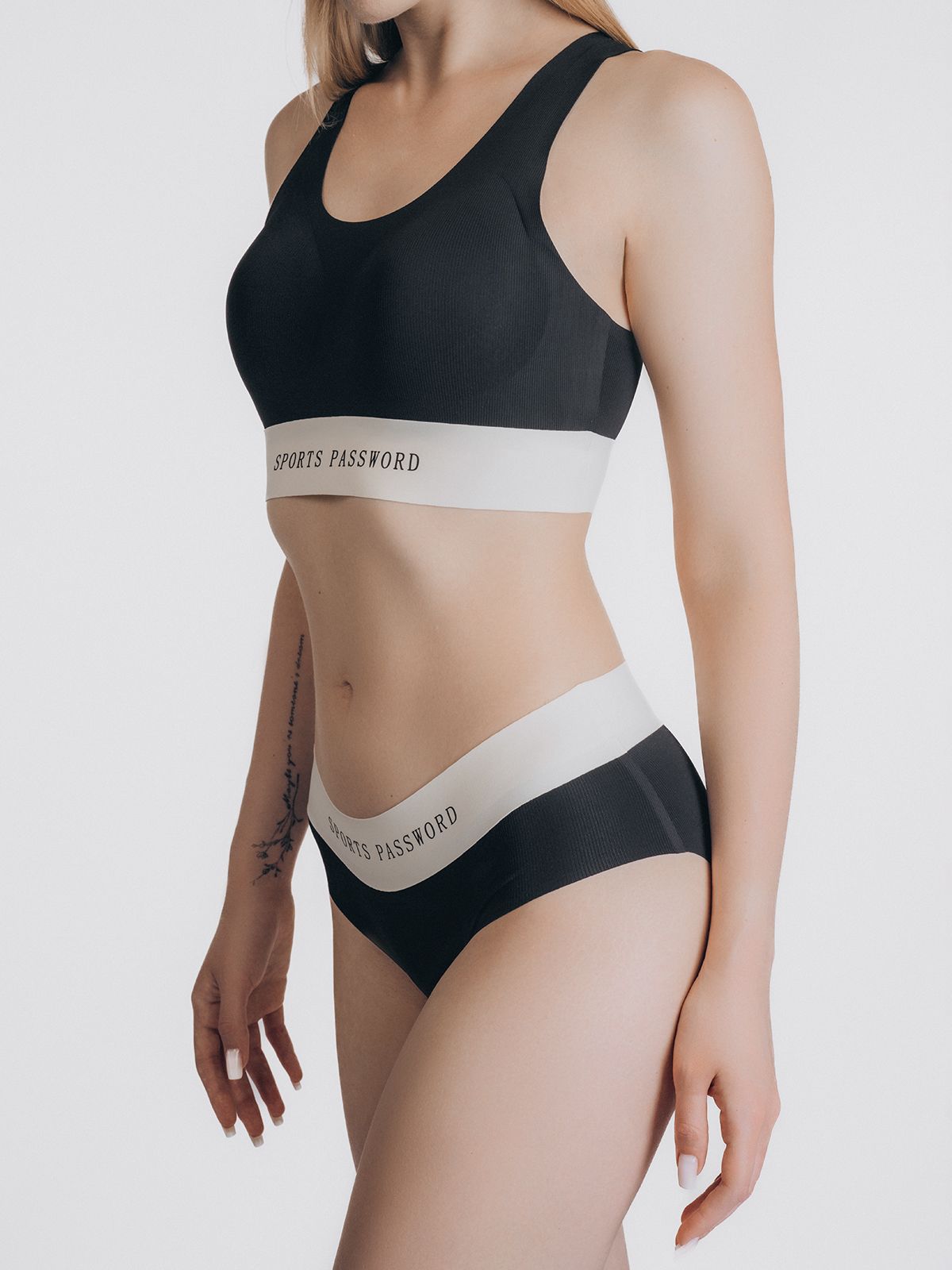 Бюстгальтер выполнен в классическом элегантном стиле, сочетая роскошь кружева с современным дизайном. Глубокий черный цвет и изысканный узор создают атмосферу таинственности и женственности, делая этот комплект идеальным выбором для особенных моментов или повседневного шика.