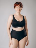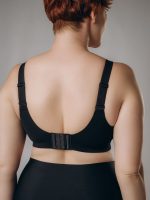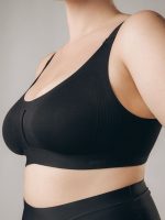 Бюстгальтер выполнен в классическом элегантном стиле, сочетая роскошь кружева с современным дизайном. Глубокий черный цвет и изысканный узор создают атмосферу таинственности и женственности, делая этот комплект идеальным выбором для особенных моментов или повседневного шика.