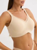 Бесшовные бюстгальтеры топ и бесшовные лифчики топы — находка для тех, кто ценит незаметность и комфорт белья в повседневном гардеробе. Наш бежевый бюстгальтер — идеальное решение для любого случая: он совершенно невиден под светлой одеждой, не оставляет следов благодаря плоским швам и удобной конструкции.